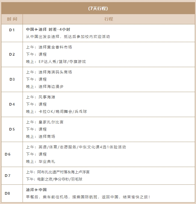 在迪拜游览风景名胜,感受异国风情,体验名校风采,提升学习动力。