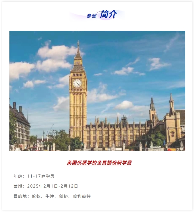 【2025寒假国际游学|全真插班】英国G5名校国际研学营12天