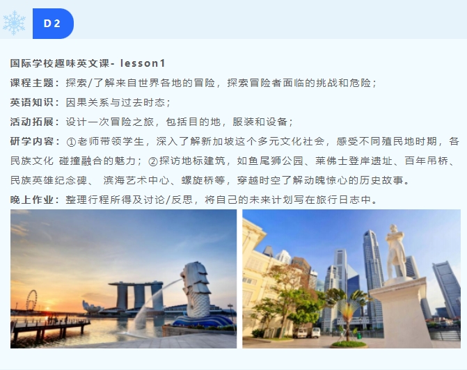 ·感受亚洲发达国家独特的多元教育,学习新加坡的先进教学理念;