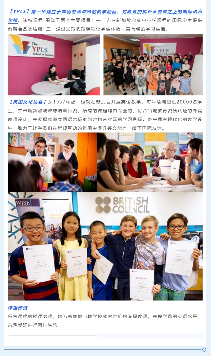 新加坡的双语教学模式和语言环境,让同学们突破口语瓶颈,提高同学们对英语学习的自信心,在不断的英语提高中,爱上英语!