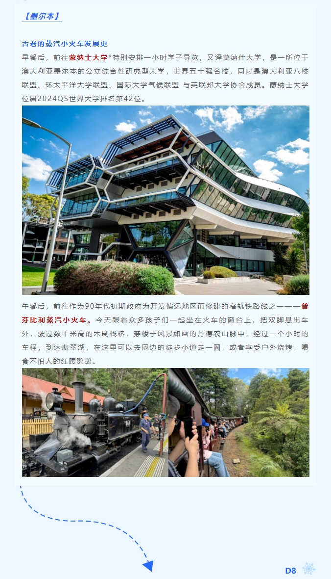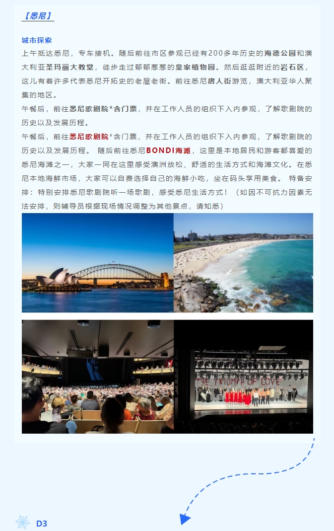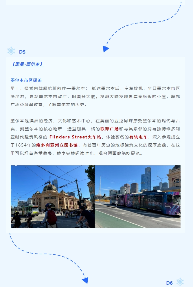 游走澳洲,感受澳洲文化气息。在行进中了解澳洲历史、文化、艺术的变迁,饱览城市坐标,体验视觉感官的强烈冲击。