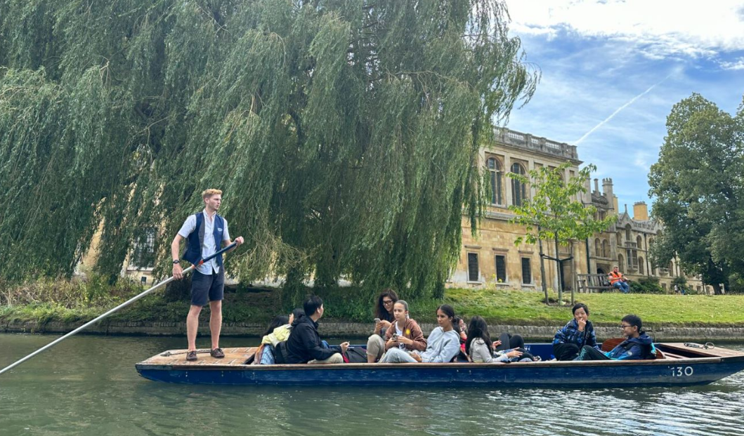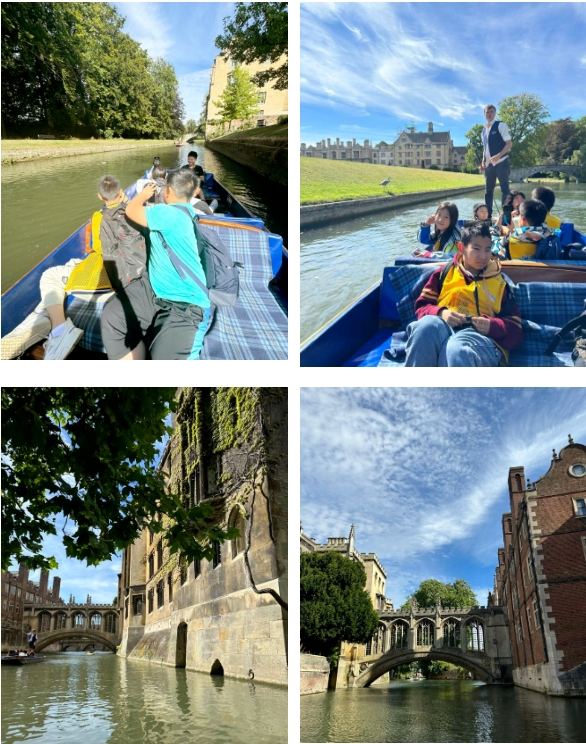 乘船游览在剑河之畔,穿过牛顿桥、叹息桥,同学们认真聆听每座桥背后的故事,还诵读了徐志摩的《再别康桥》。