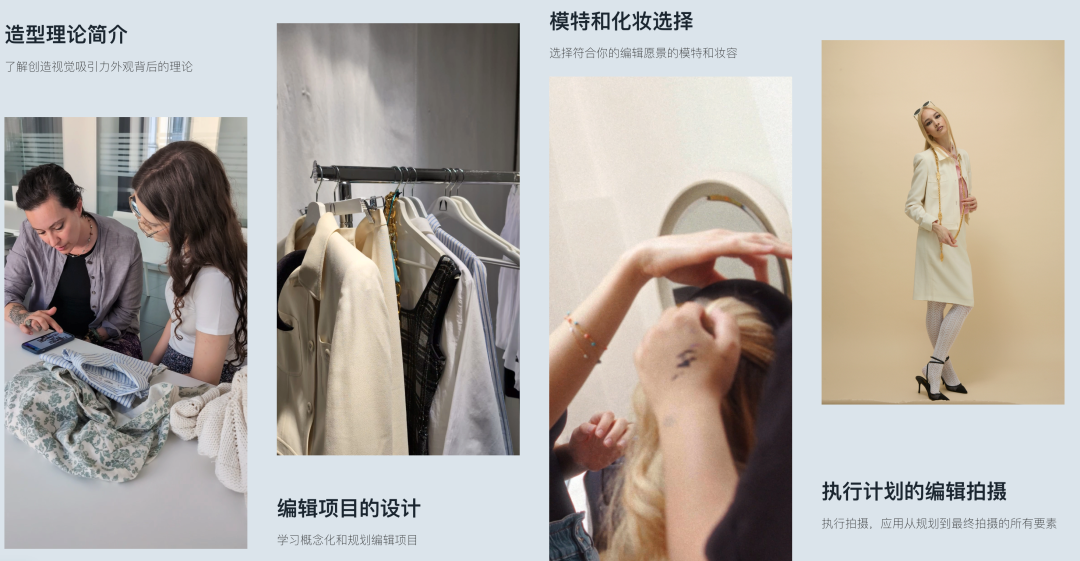 编辑项目设计:学生将学习如何设计完整的时尚编辑项目,从创意构想到执行方案。