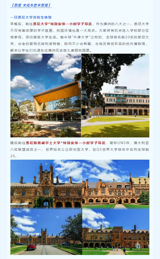 游走澳洲,感受澳洲文化气息。在行进中了解澳洲历史、文化、艺术的变迁,饱览城市坐标,体验视觉感官的强烈冲击。